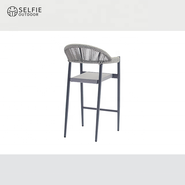 เก้าอี้บาร์โครงอะลูมิเนียมหวายเทียมทันสมัยสำหรับใช้งานกลางแจ้งในครัว วิลล่า และโรงงาน
