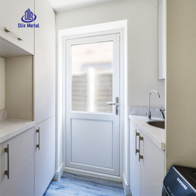 ประตู PVC ทันสมัยสำหรับบ้าน ห้องครัว ลานหลังบ้าน ห้องน้ำ ขายส่ง ระเบียง อพาร์ทเมนต์ ประตูบานเดี่ยวแบบเปิดข้าง UPVC ครึ่งกระจก