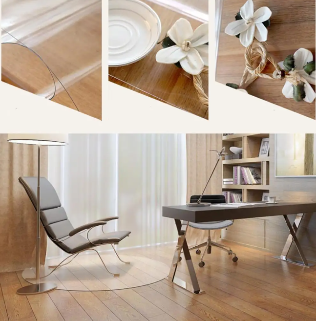เสื่อพีวีซีใสทันสมัยสำหรับเก้าอี้สำนักงานพรมปูพื้นกันน้ำสำหรับใช้ในบ้านสั่งซื้อทางไปรษณีย์แผ่นรองเก้าอี้