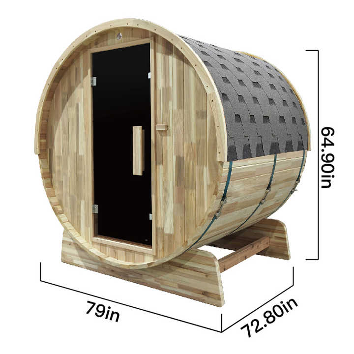 ห้องซาวน่ากลางแจ้งแบบพาโนรามาสมัยใหม่ วิลล่าพักตากอากาศ สำหรับ 4-6 คน ทำจากไม้ซีดาร์แดงแท้ พร้อมเตาฮาร์เวีย เป็นมิตรกับสิ่งแวดล้อม