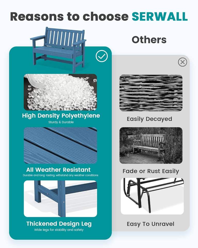 ม้านั่งในสวนแบบทันสมัยม้านั่งในสวน HDPE สำหรับที่นั่งกลางแจ้งเก้าอี้สวนทนทาน