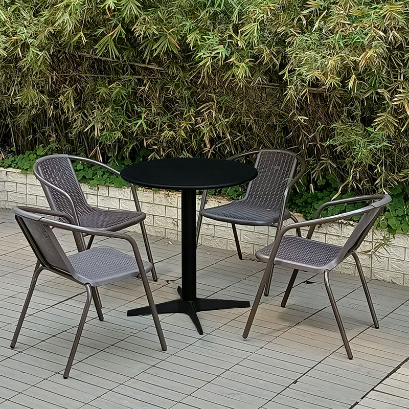 เก้าอี้รับประทานอาหารในสวนทำจากพลาสติกแบบวางซ้อนกันได้สำหรับระเบียงลานบ้านแบบทันสมัยเชือกหวายเก้าอี้รับประทานอาหารในสวน