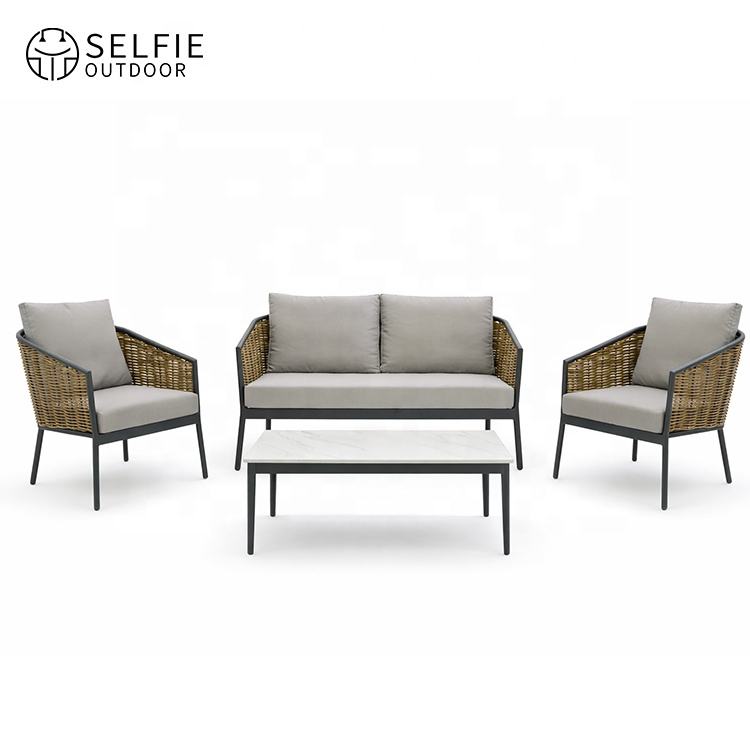 Modern Patio Garden Dining Courtyard Sofas Set Villa Hotel Furniture Waterproof Leisure Rattan Aluminum Living Room Bedroom