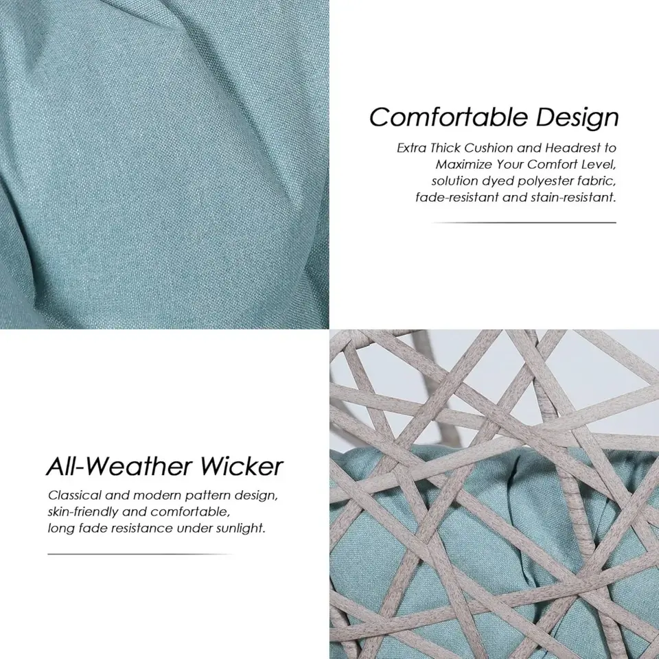 เก้าอี้หวายทรงไข่แบบแขวนทันสมัยสำหรับลานบ้านเก้าอี้แกว่งหวายเปลยืนเบาะกันน้ำสำหรับห้องนอนระเบียงสวนสวนสีฟ้า