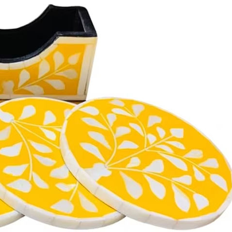 ชุดที่รองแก้วฝังกระดูกสุดหรูสำหรับตกแต่งโต๊ะกาแฟชุดถาดรองแก้วฝังกระดูกดีไซน์สไตล์โมร็อกโกด้วยงานฝีมือทำมือ