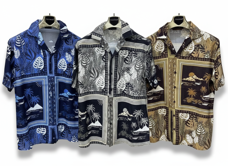 เสื้อเชิ้ตแขนสั้นผู้ชายลายทันสมัย – ทรงหลวม ผ้าเนื้อน้ำหนักเบา ดีไซน์ฤดูร้อนทันสมัยสำหรับชุดลำลอง ชุดวันหยุด