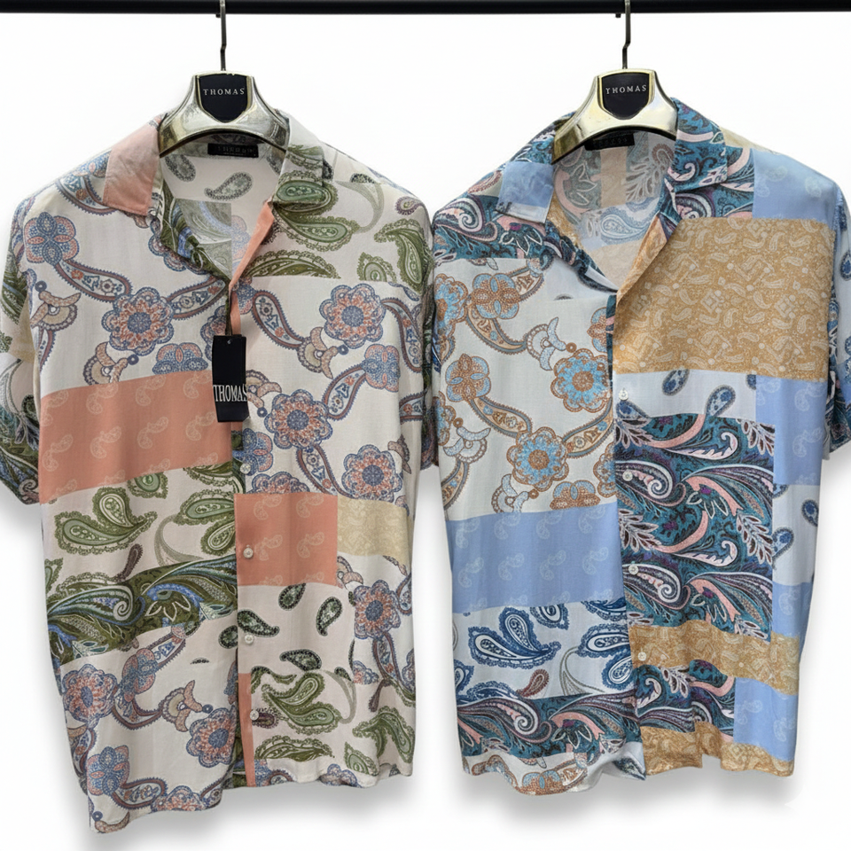 เสื้อเชิ้ตแขนสั้นผู้ชายลายทันสมัย – ทรงหลวม ผ้าเนื้อน้ำหนักเบา ดีไซน์ฤดูร้อนทันสมัยสำหรับชุดลำลอง ชุดวันหยุด
