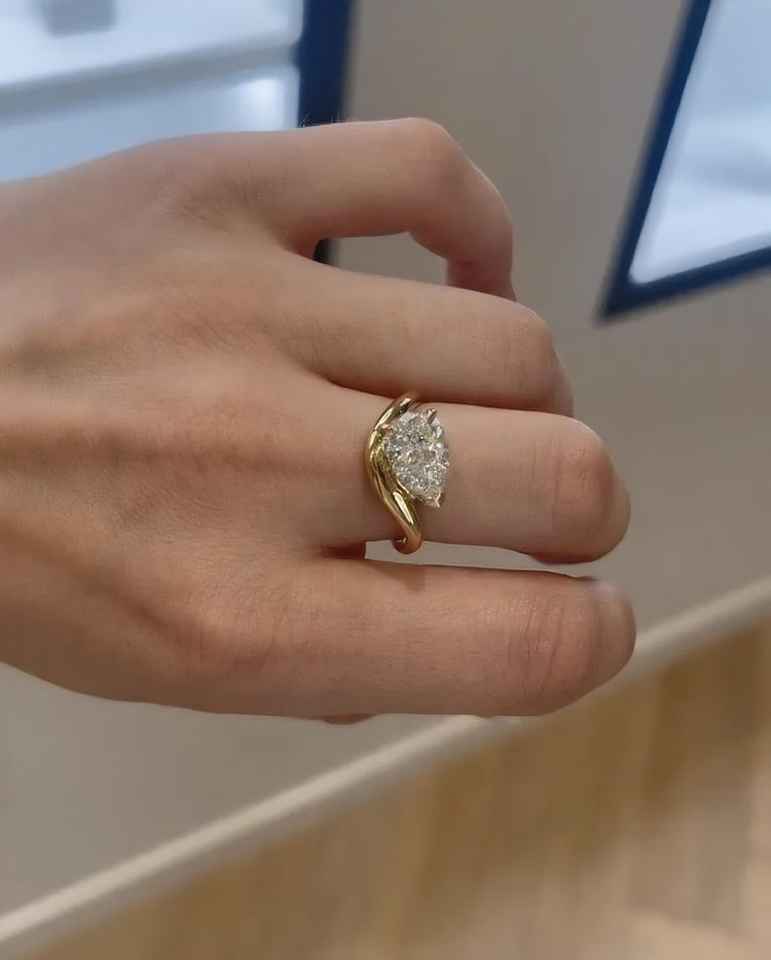 แหวนแถบโค้งประดับเพชรสังเคราะห์ทรงลูกแพร์