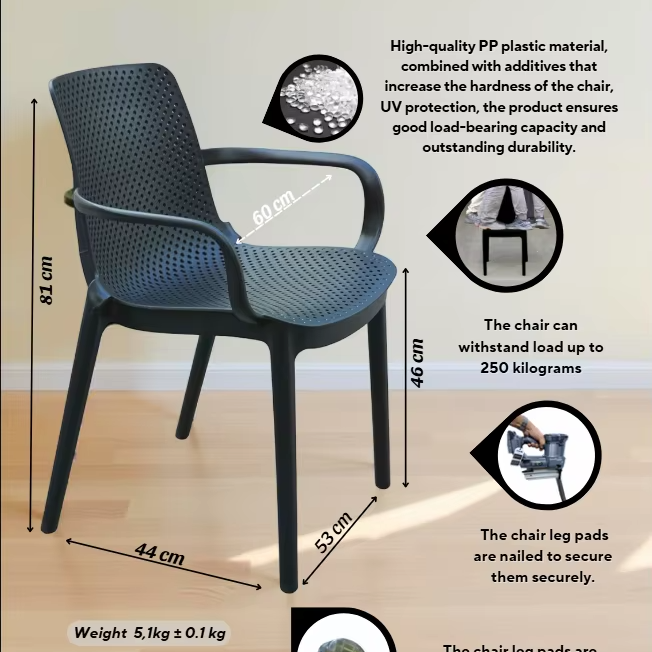 เก้าอี้พลาสติก PP แบบมีรูระบายอากาศทันสมัย – เก้าอี้ฉีดขึ้นรูปกันน้ำแบบซ้อนได้ สำหรับใช้ในร้านกาแฟ ร้านอาหาร สวน และบ้าน