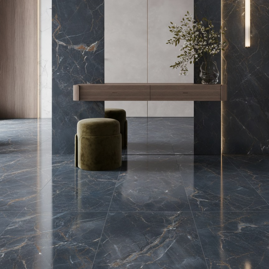 กระเบื้องปูพื้นและผนังพอร์ซเลนสีน้ำเงินเพอร์ลาโต้แบบโมเดิร์น ผิวด้าน ทนกรด สำหรับตกแต่งภายในบ้าน วิลล่า ขนาด 60x120 ซม.