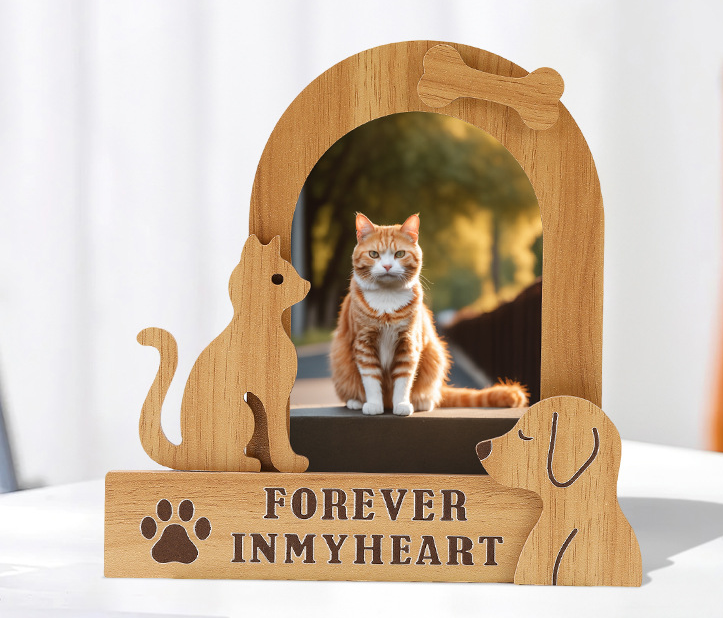 กรอบรูปไม้ทรงสี่เหลี่ยมสำหรับสัตว์เลี้ยงสมัยใหม่ สำหรับแมว สุนัข นก สัตว์เลื้อยคลาน ใช้ซ้ำได้ เป็นมิตรกับสิ่งแวดล้อม สำหรับตั้งโชว์บนโต๊ะ