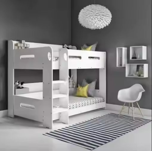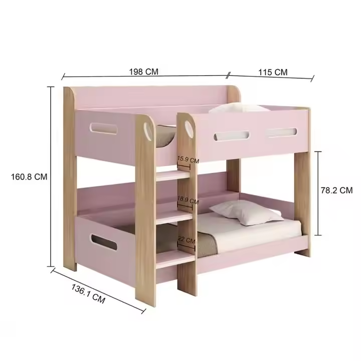 เตียงสองชั้นโลหะสีชมพูทันสมัยสำหรับเด็ก พร้อมเฟอร์นิเจอร์ห้องนอนผ้า สำหรับใช้ในบ้านและวิลล่า
