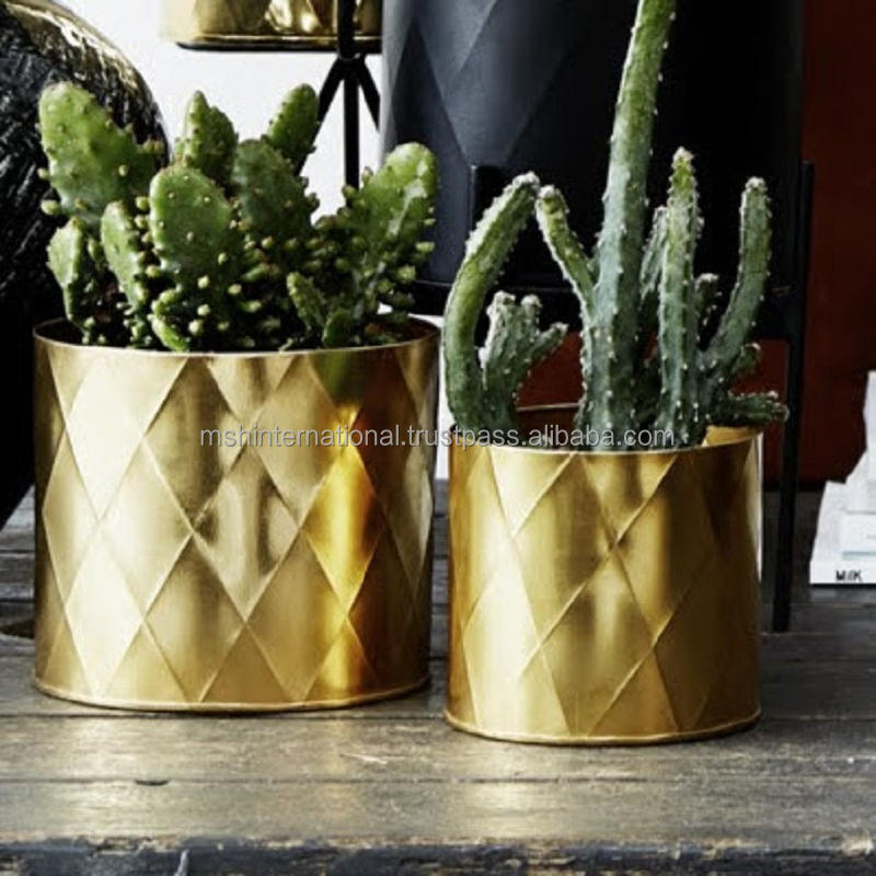 กระถางเซรามิกสีทองสำหรับปลูกต้นไม้กระถางปลูกต้นไม้รูปทรงกระบอกสำหรับปลูกต้นไม้กลางแจ้งในร่ม