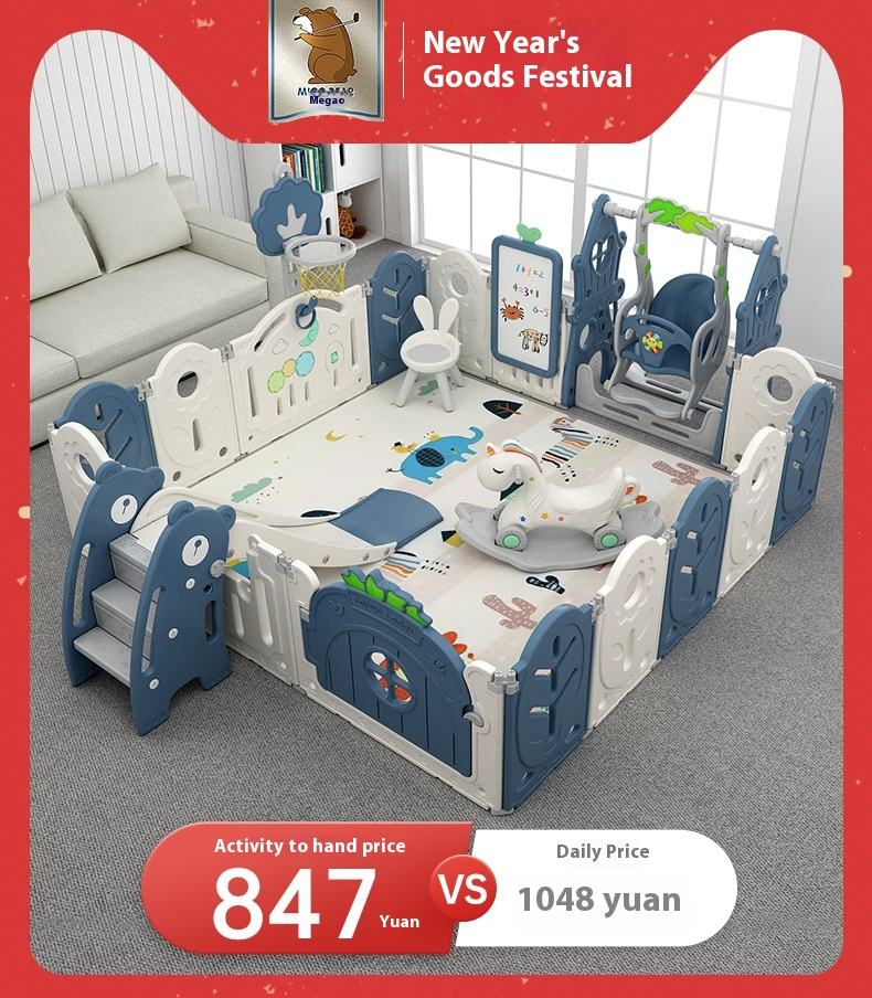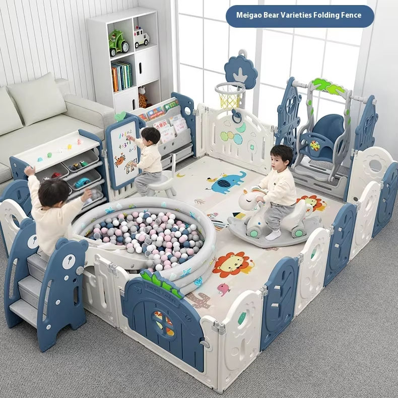 รั้วกั้นเด็กแบบพลาสติกสมัยใหม่ ปลอดภัยสำหรับการคลาน เสื่อเล่นในบ้าน รั้วกั้นพื้นสำหรับเด็ก ป้องกันการกระแทก