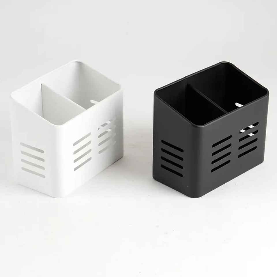 ที่ใส่ช้อนส้อมพลาสติกแบบทันสมัย 2 ช่อง กล่องเก็บอุปกรณ์ครัว วางบนเคาน์เตอร์ ดีไซน์ระบายน้ำได้