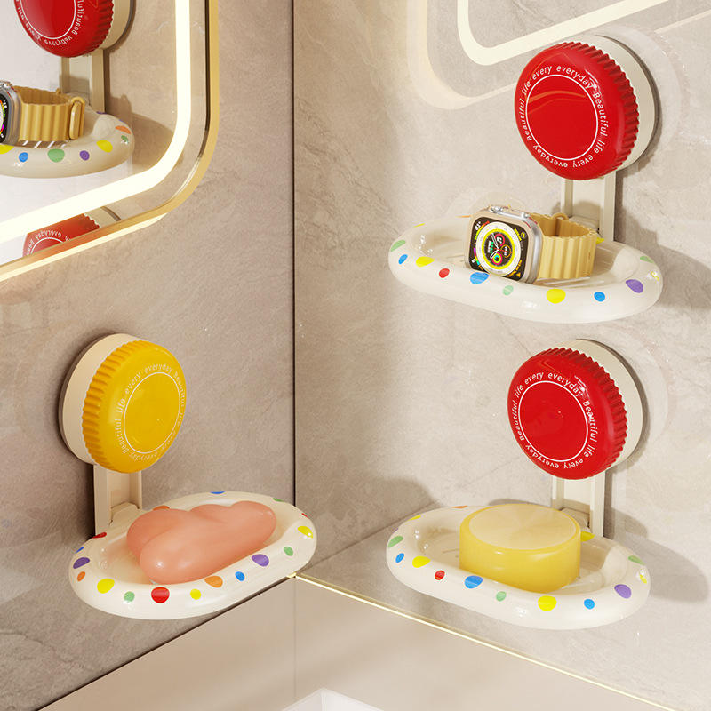 กล่องสบู่พลาสติกแบบมีที่ดูดติดผนังชั้นเก็บของแบบไม่เจาะรูสำหรับใช้ในบ้านแบบพกพาสำหรับใช้ในห้องน้ำ