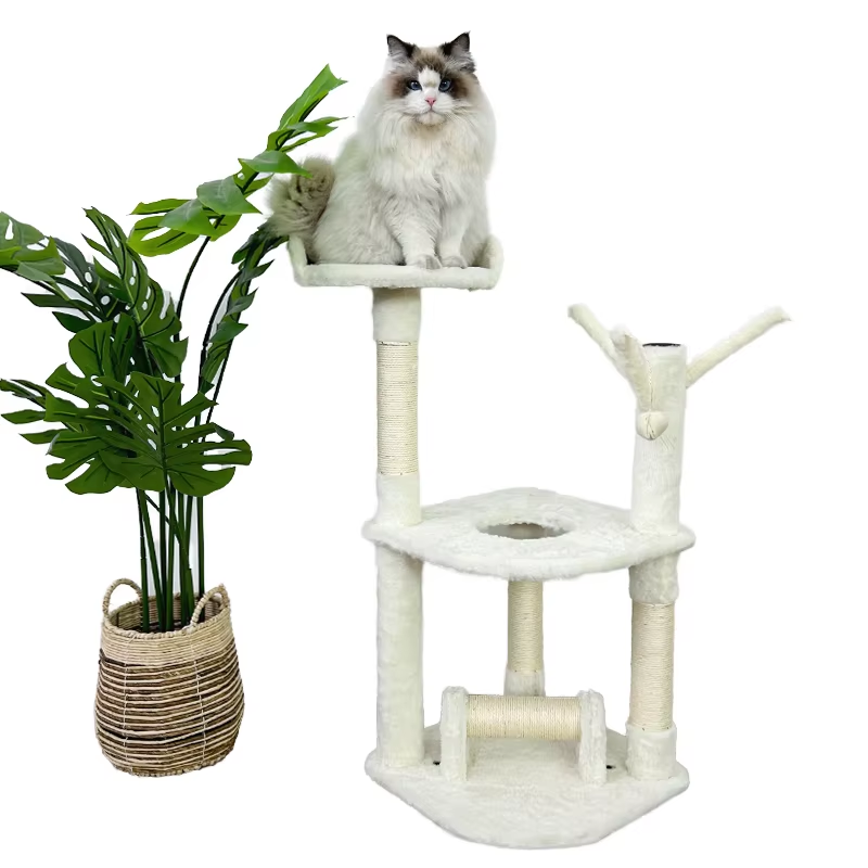คอนโดแมวพร้อมเสาข่วนทำจากป่านศรนารายณ์โครงสำหรับแมวปีนเขาแบบอินเตอร์แอคทีฟ