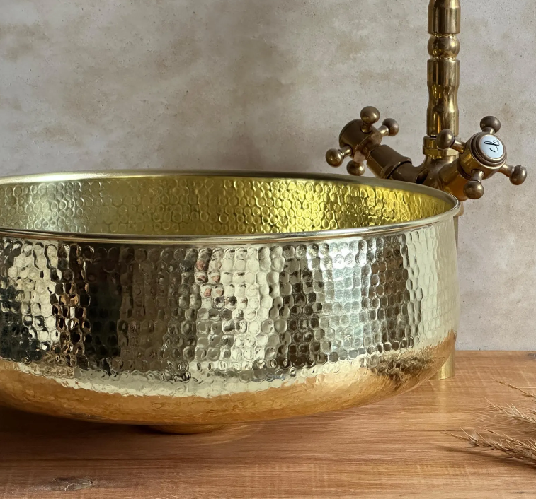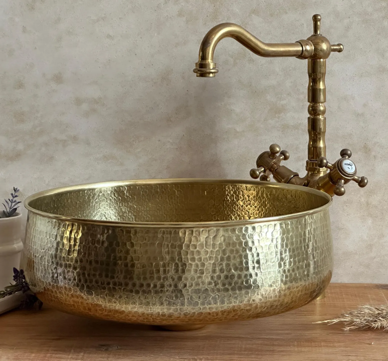 อ่างล้างจานทองแดงชุบทองขัดเงาทันสมัย แบบช่องเดียว พร้อมท่อระบายน้ำ สีตามสั่ง