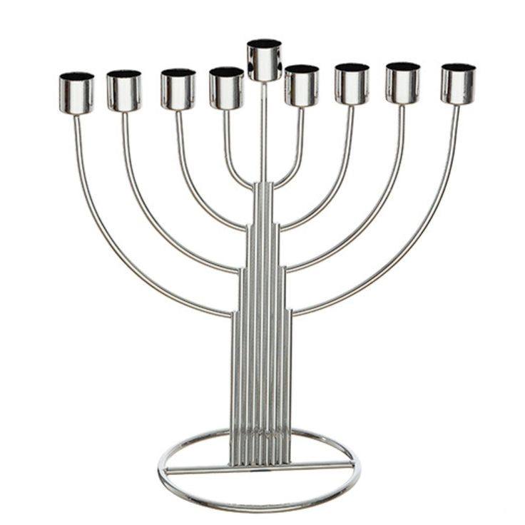 เชิงเทียนเมโนราห์เก้ากิ่งสีเงินขัดเงาสมัยใหม่ ของตกแต่งโต๊ะฮานุกกะห์แบบมินิมอลสำหรับชาวยิว ผิวเรียบเนียน