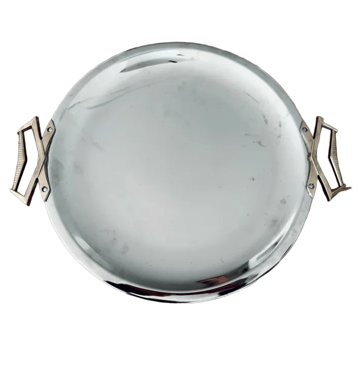 ถาดเสิร์ฟสแตนเลสขัดเงาแบบทันสมัยพร้อมด้ามจับเหมาะสำหรับเสิร์ฟอาหารและเครื่องดื่ม