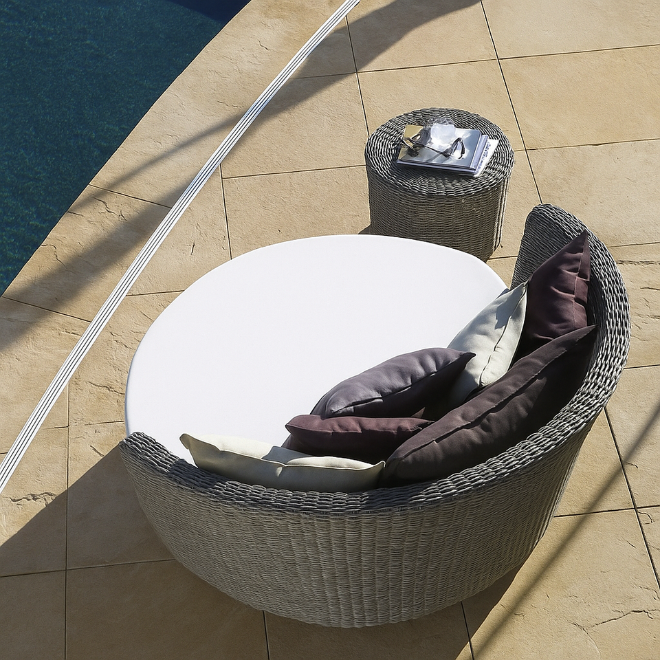 เก้าอี้เลานจ์หวายหวายโพลีทันสมัยนั่งสบายกลางแจ้งพร้อมเบาะทนต่อสภาพอากาศ