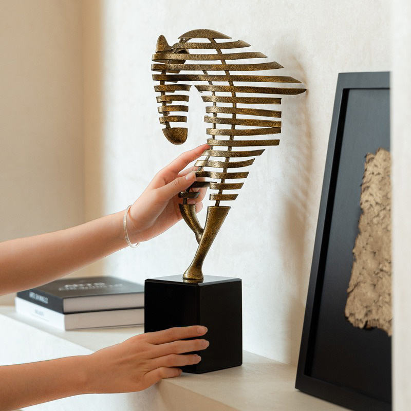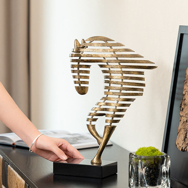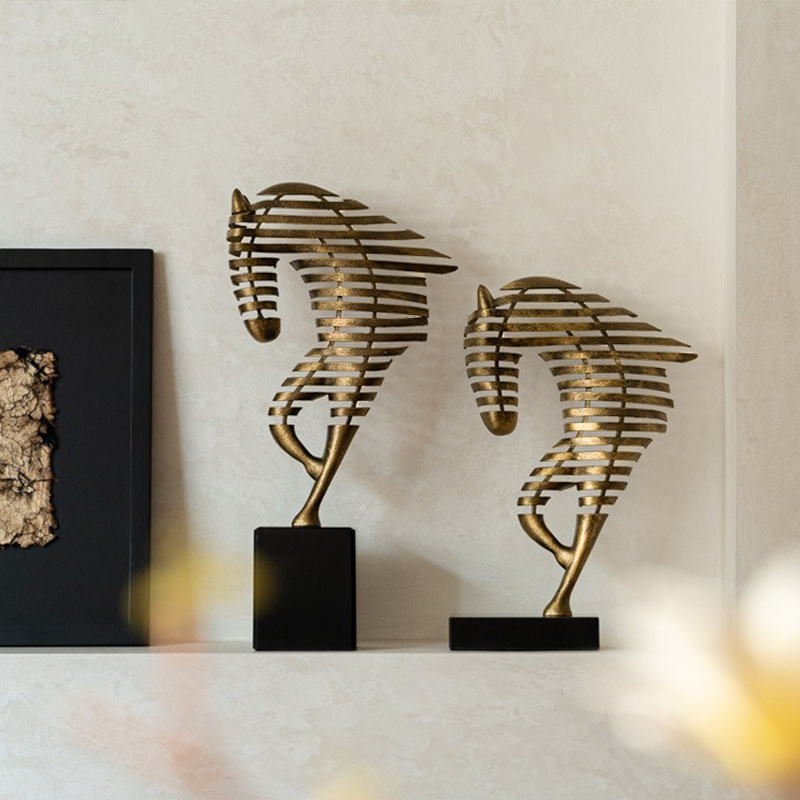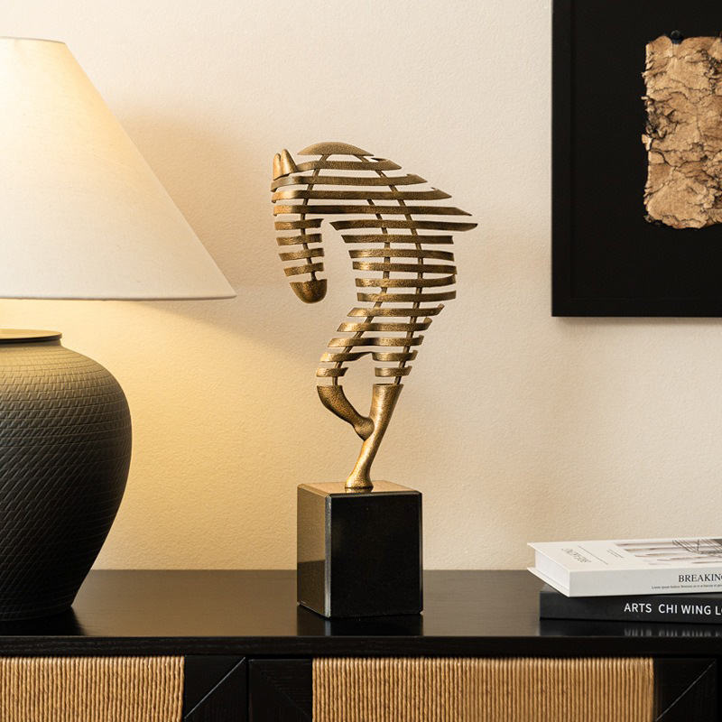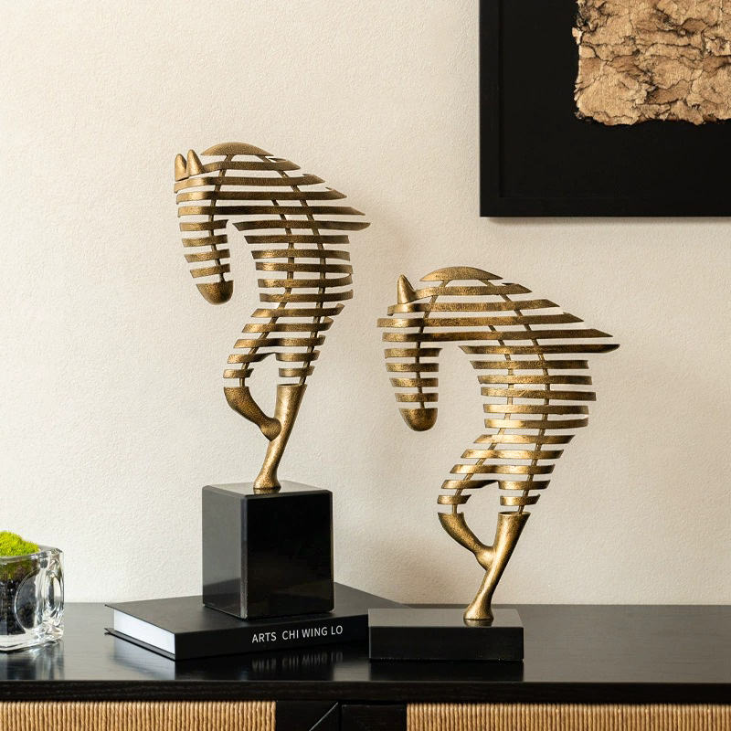 รูปปั้นม้าอะลูมิเนียมงานแฮนด์เมดสไตล์ป๊อปอาร์ตสมัยใหม่ ฐานสีดำ ประดับด้วยงานโลหะสีทอง งานศิลปะรูปสัตว์ สำหรับตกแต่งบ้าน