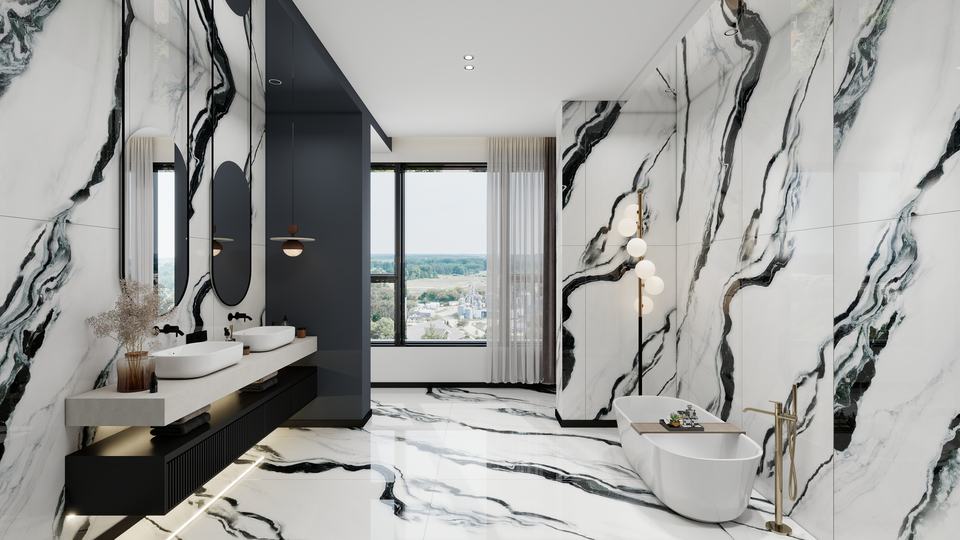 กระเบื้องพอร์ซเลนสมัยใหม่ ขนาด 90x180 ซม. สำหรับห้องลอฟท์และอพาร์ทเมนต์ ดีไซน์มินิมอล ทนไฟ ทนแรงกระแทกสูง