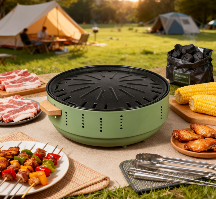เตาบาร์บีคิวเกาหลีแบบพกพาสำหรับใช้งานกลางแจ้ง รุ่นใหม่ ปี 2026 ดีไซน์ทันสมัย เคลือบสารกันติด โครงสร้างเหล็กคาร์บอน ใช้ถ่าน/ไฟฟ้า เหมาะสำหรับการตั้งแคมป์