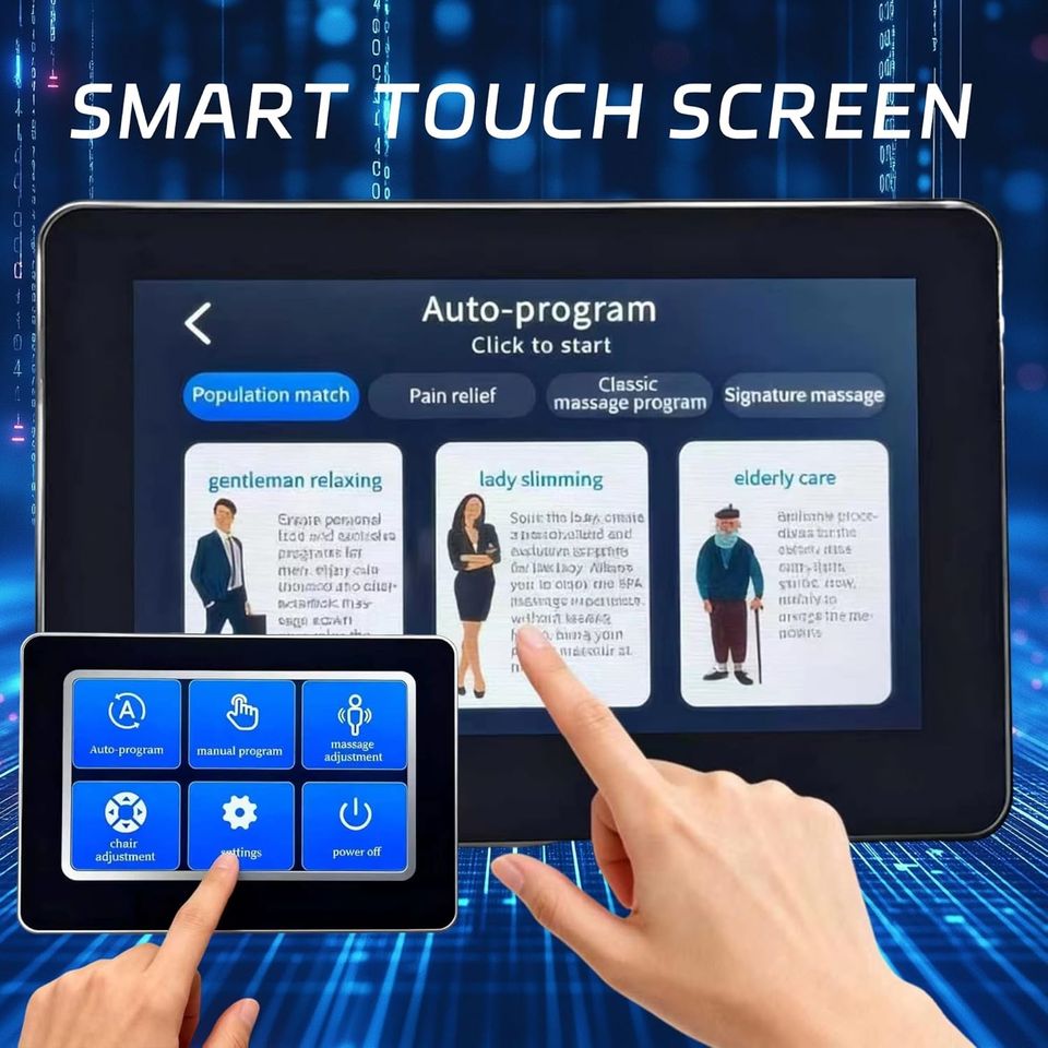 เก้าอี้นวดอัจฉริยะแบบพกพา รุ่นใหม่ จอใหญ่ นวดได้ทั่วร่างกาย ระบบ Zero Gravity พร้อมถุงลมนวด ลูกกลิ้งนวดสะโพก นวดเท้า มีเสียงเพลง สำหรับใช้ในเชิงพาณิชย์