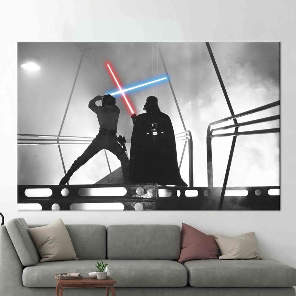 โปสเตอร์สมัยใหม่: ภาพพิมพ์บนผ้าใบของดาร์ธ เวเดอร์และลุค สกายวอล์คเกอร์กำลังต่อสู้,1P: ห่อหุ้มอย่างดี