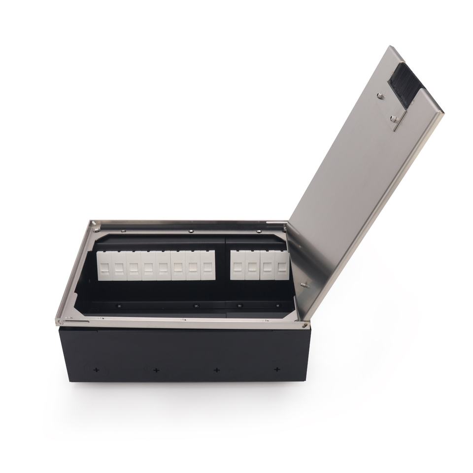 ระบบกล่องพื้นสำหรับจัดเก็บสายไฟและข้อมูลที่ทันสมัย พร้อมโครงสแตนเลสสำหรับห้องประชุม
