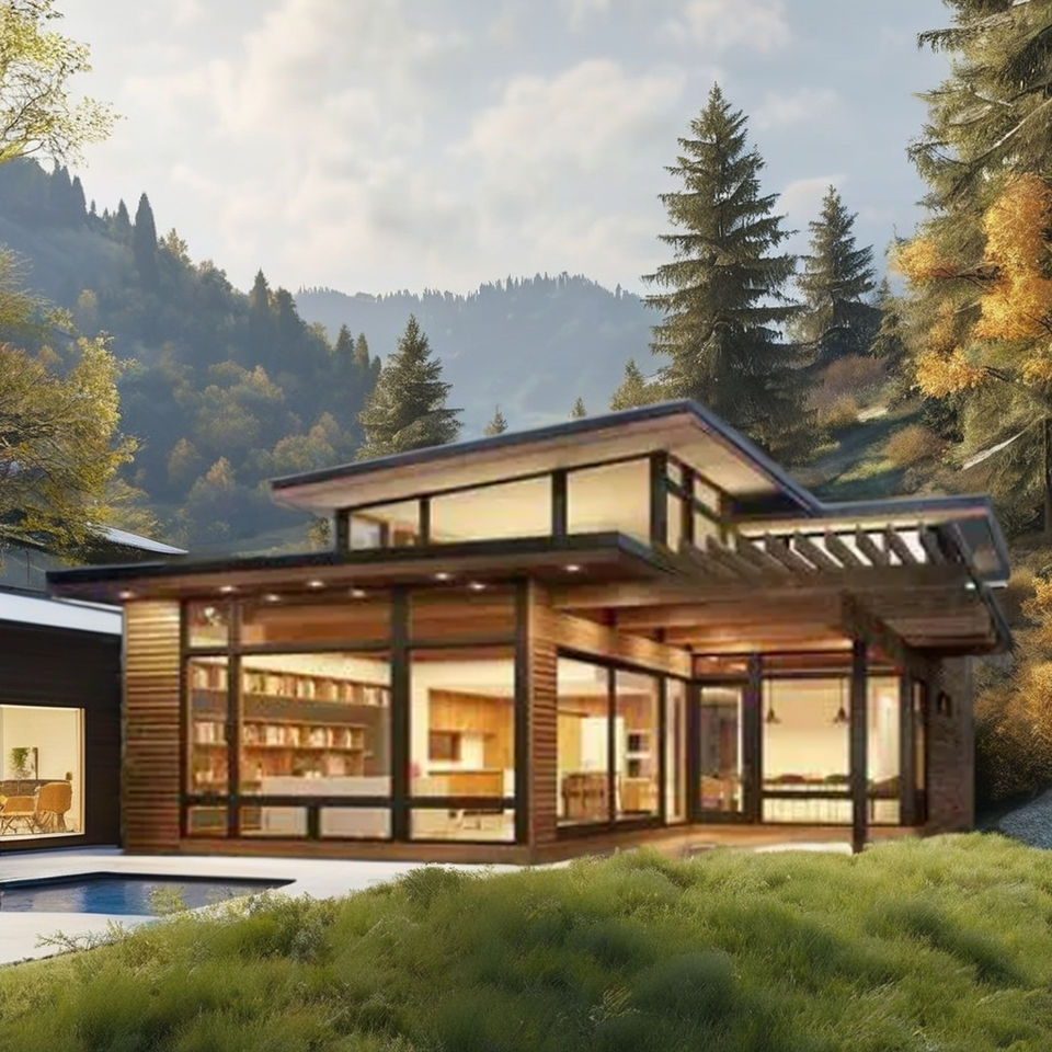 modern prefab houses, Warehouse, Workshop, Park, Courtyard, Kitchen, Bathroom, Home Office, Living Room, Bedroom, DiningApplication
