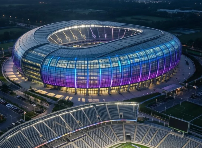 อาคารพาณิชย์โครงสร้างเหล็กสำเร็จรูปสมัยใหม่ สนามกีฬาฟุตบอลขนาดใหญ่ สนามกีฬา