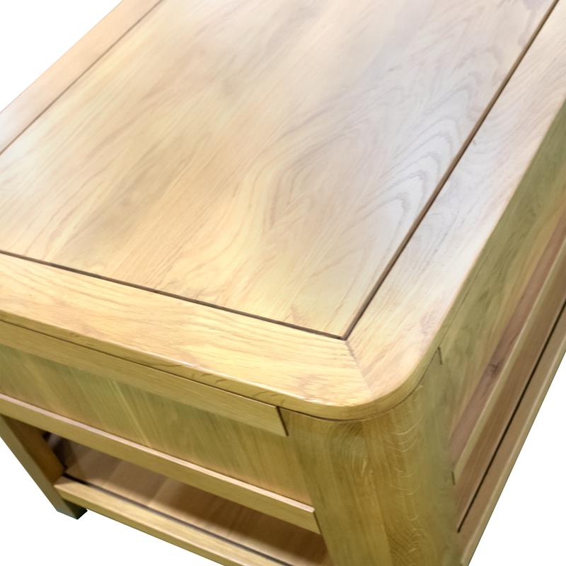 โต๊ะกาแฟทำจากไม้สนแบบพรีเมี่ยมที่ทันสมัยชั้นวางแบบเปิดสองลิ้นชักดีไซน์แบบดั้งเดิมผ่านการรับรองการปรับแต่ง OEM เฟอร์นิเจอร์สำหรับการใช้ชีวิต