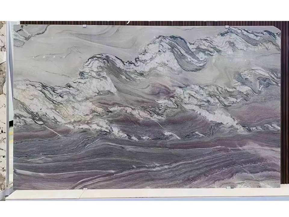 โต๊ะกาแฟโอนิกซ์สีม่วงแบบพรีเมี่ยมที่ทันสมัยพื้นผิวขัดเงาลายเส้นธรรมชาติที่เป็นเอกลักษณ์กันน้ำใช้ในร่มของตกแต่งห้องนั่งเล่นหรูหรา