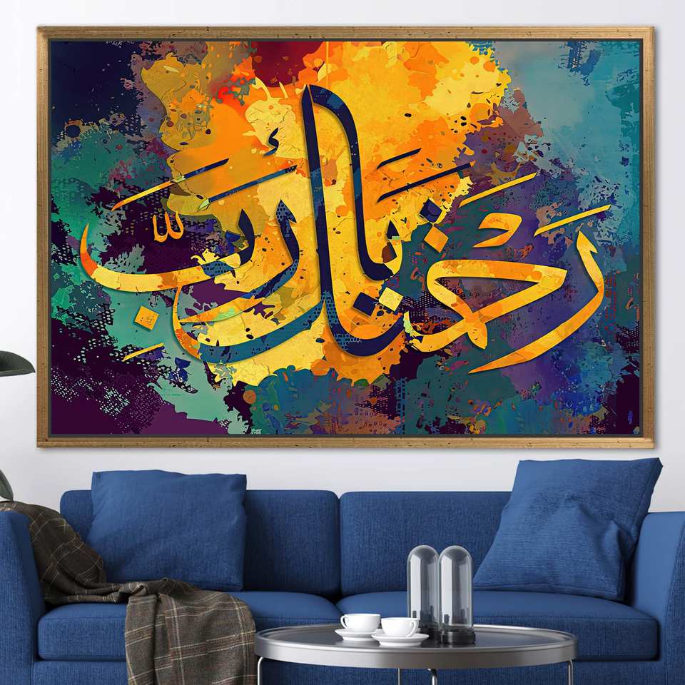 ผ้าใบพิมพ์ลายศิลปะสมัยใหม่ - งานพิมพ์ลายอักษรศิลป์แบบมุสลิมสำหรับตกแต่งบ้านอย่างสง่างาม,1P:กรอบสีทอง