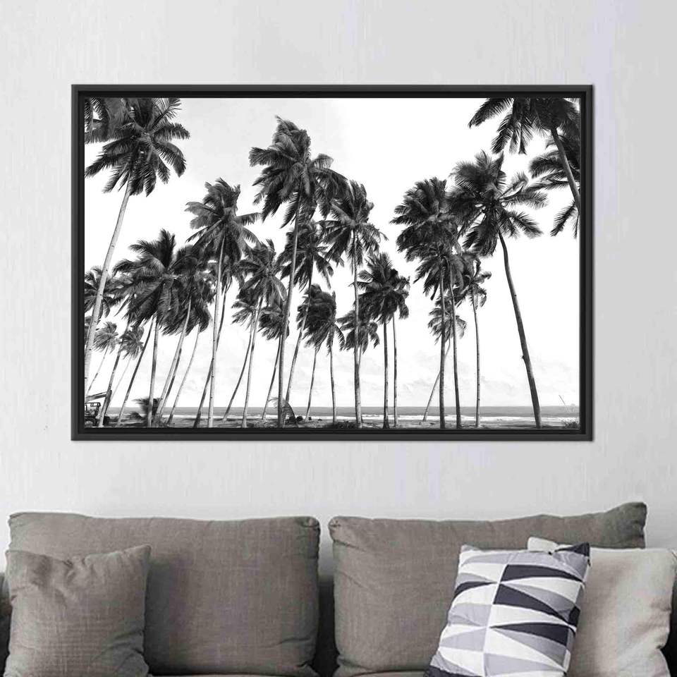 งานศิลปะบนผ้าใบพิมพ์ลายสมัยใหม่ - ดีไซน์ต้นปาล์มสุดหรู,1P:กรอบสีดำ