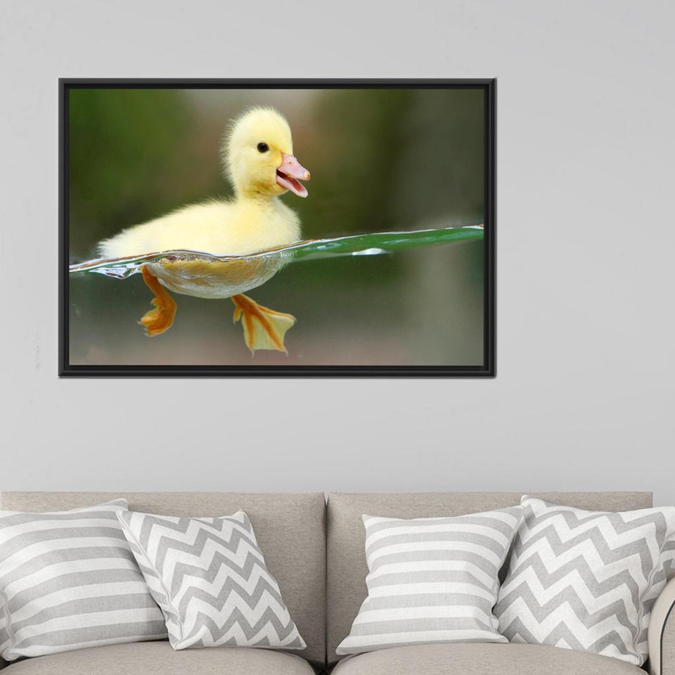 ผ้าใบพิมพ์ลายสมัยใหม่: งานศิลปะรูปเป็ดน้อยน่ารัก ของขวัญรูปสัตว์,1P:กรอบสีดำ