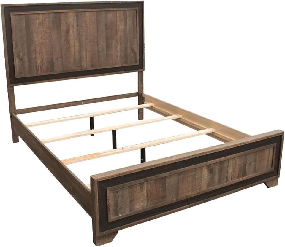 เตียงขนาดควีนไซส์ทันสมัยพร้อมแผงหัวเตียงสูงทำจากไม้ธรรมดาในสไตล์ไม้โอ๊คสีน้ำตาลเข้ม