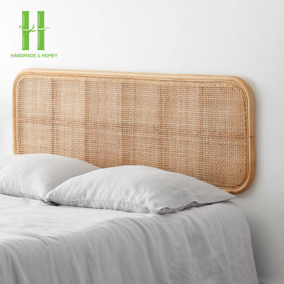 เตียงหวายทันสมัยพร้อมหัวเตียงเรียบง่ายสำหรับใช้ในบ้านและวิลล่า ขนาดปรับแต่งได้ ผลิตในเวียดนาม