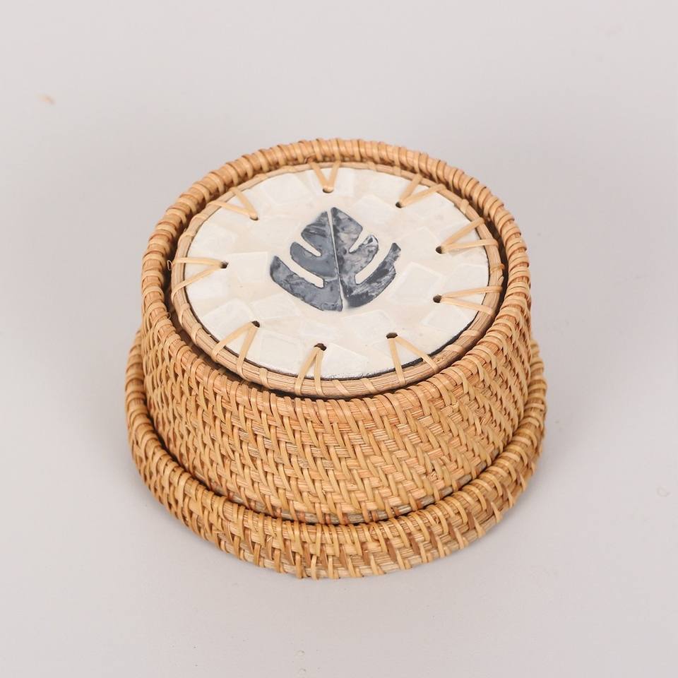ชุดถาดรองแก้วลายมุกหวายแบบทันสมัยแพ็คแบบกล่องโลโก้ออกแบบได้ตามต้องการผลิตในเวียดนาม