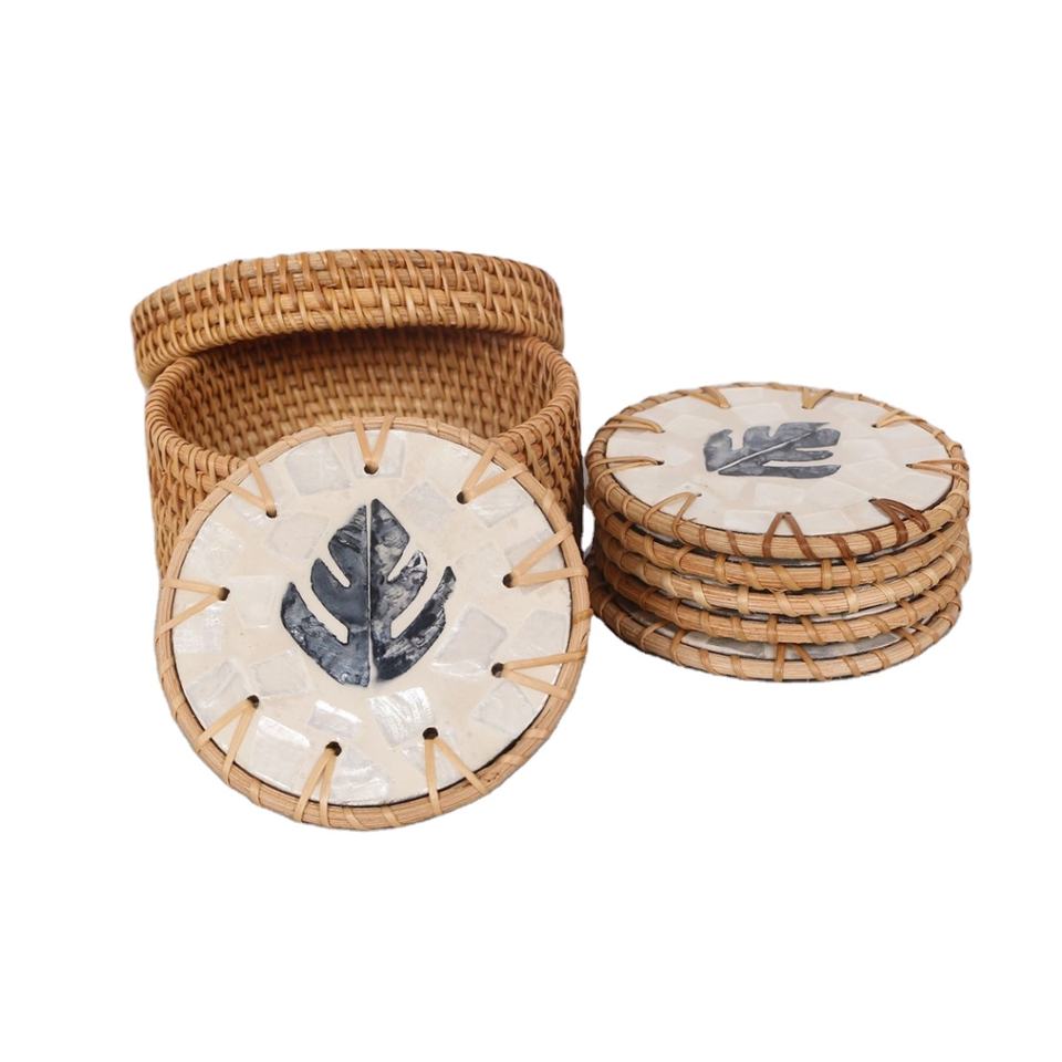 Mother of Pearl Coasters with Rattan made in Vietnam