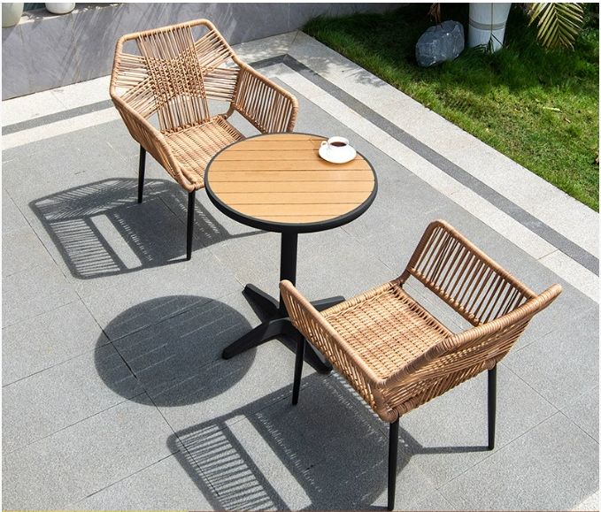 เก้าอี้หวายสามชิ้นแบบโมเดิร์น, โต๊ะและเก้าอี้เฟอร์นิเจอร์กลางแจ้งหวายแบบสามชิ้นรวมกันเป็นลานวิลล่าระเบียงสวนระเบียง