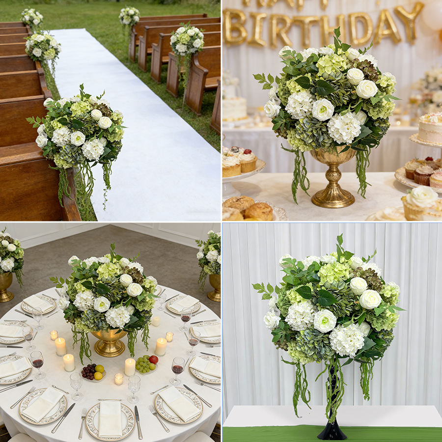 การจัดดอกไม้ประดิษฐ์สีเขียวขาวแบบสมัยใหม่ ดูสมจริง พร้อมใบเฟิร์นแบบเรียงซ้อน ทำด้วยมือ เป็นมิตรกับสิ่งแวดล้อม กันน้ำ เหมาะสำหรับตกแต่งสวน