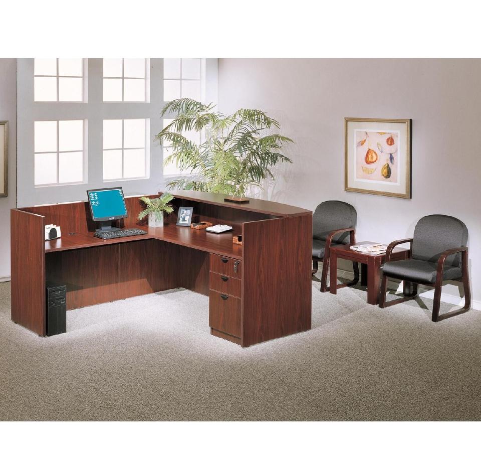 โต๊ะต้อนรับที่ทันสมัยพร้อมเคาน์เตอร์ยกสูงพื้นที่เวิร์กสเตชันไฟล์ลิ้นชักและเสร็จไม้สำหรับใช้ด้านหน้าสำนักงาน