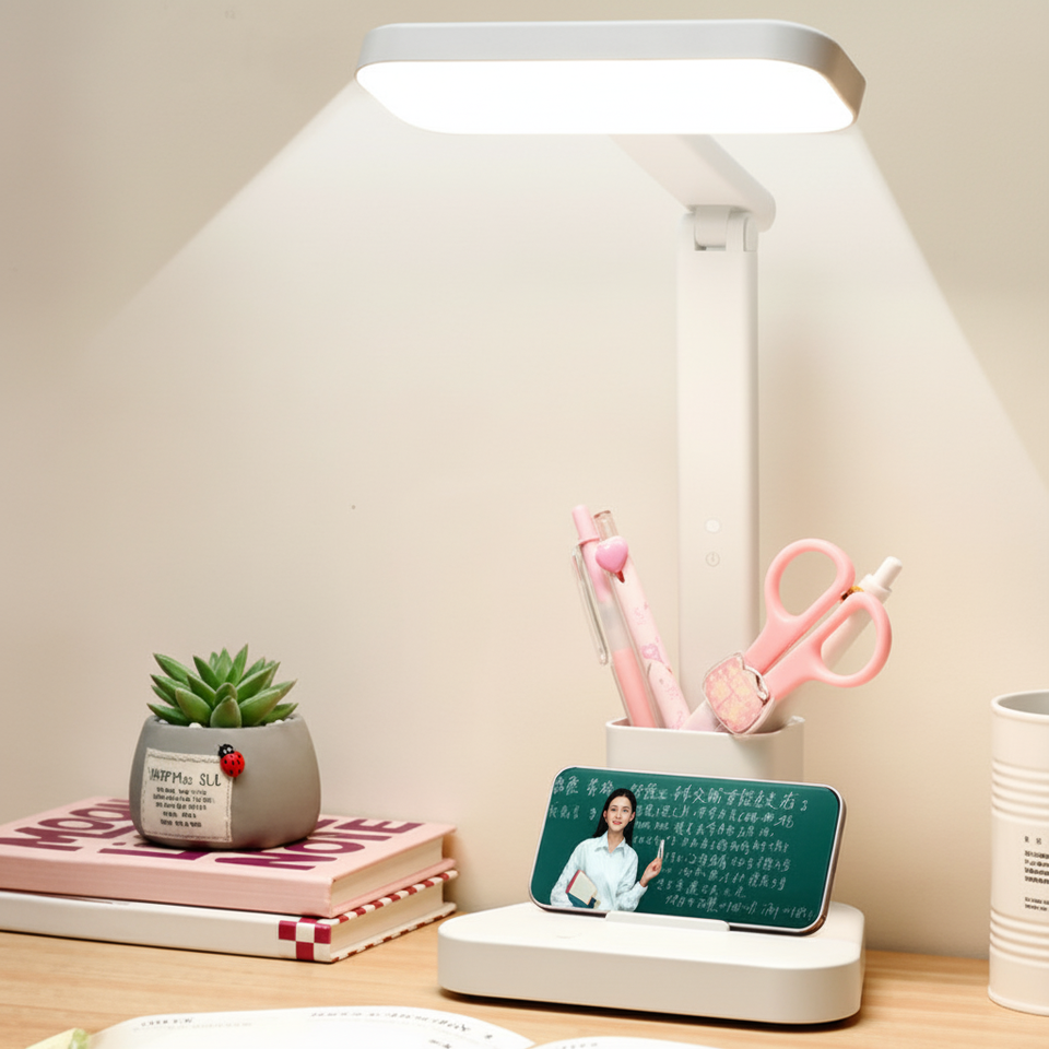 โคมไฟตั้งโต๊ะ LED แบบชาร์จไฟได้ทันสมัย พร้อมระบบสัมผัส ปรับความสว่างได้ ใช้พลังงานจากแบตเตอรี่ ตัวโคมทำจากพลาสติก โคมสีขาว สำหรับอ่านหนังสือ ถนอมสายตา
