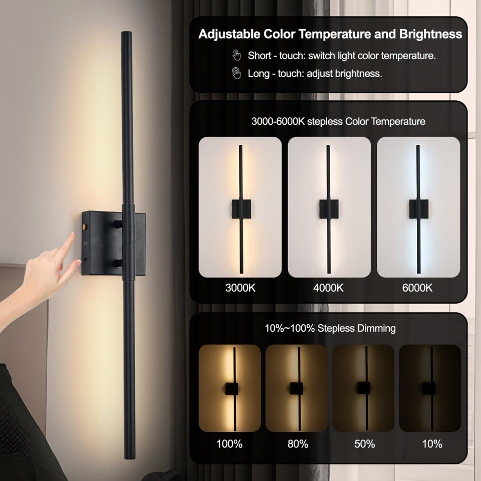 โคมไฟติดผนัง LED แบบชาร์จไฟได้รุ่นใหม่ แบตเตอรี่ 5200mAh หมุนได้ 350 องศา ไฟ LED ไร้สาย พร้อมรีโมทคอนโทรล