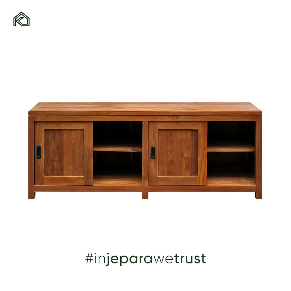 ตู้วางทีวีไม้สักแบบรีเคลมสไตล์โมเดิร์น พร้อมบานเลื่อน 3 บาน สำหรับห้องนั่งเล่น ห้องนอน โรงแรม และห้องครัว