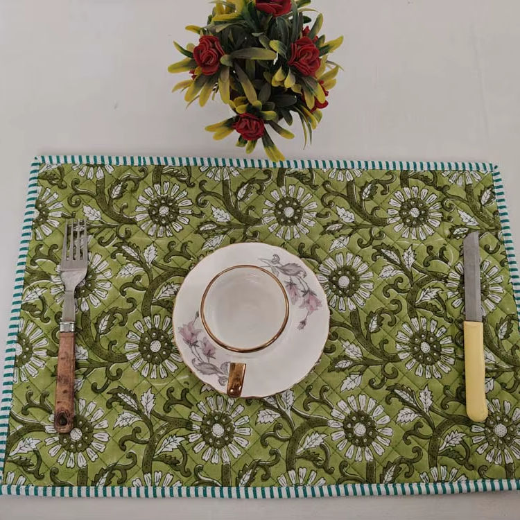 แผ่นรองจานสี่เหลี่ยมลายดอกไม้สีเขียวเข้มผ้าปูเตียงแบบใช้แล้วทิ้งใหม่ผ้าปูตกแต่งบ้านงานแต่งงานใช้ซ้ำได้