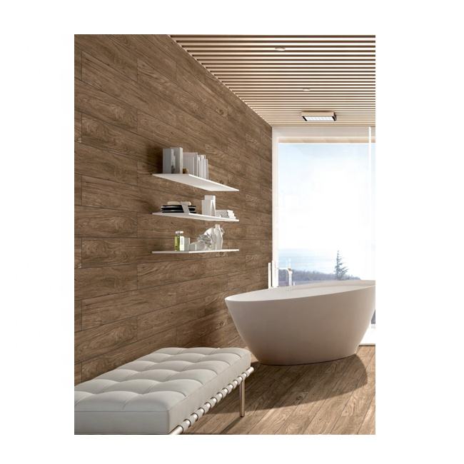 กระเบื้องไม้พอร์ซเลนสำหรับตกแต่งภายในสี่เหลี่ยมผืนผ้าขนาด200x1200มม. พื้นเนื้อเซรามิกทนกรดสไตล์ยุโรปที่ทันสมัย